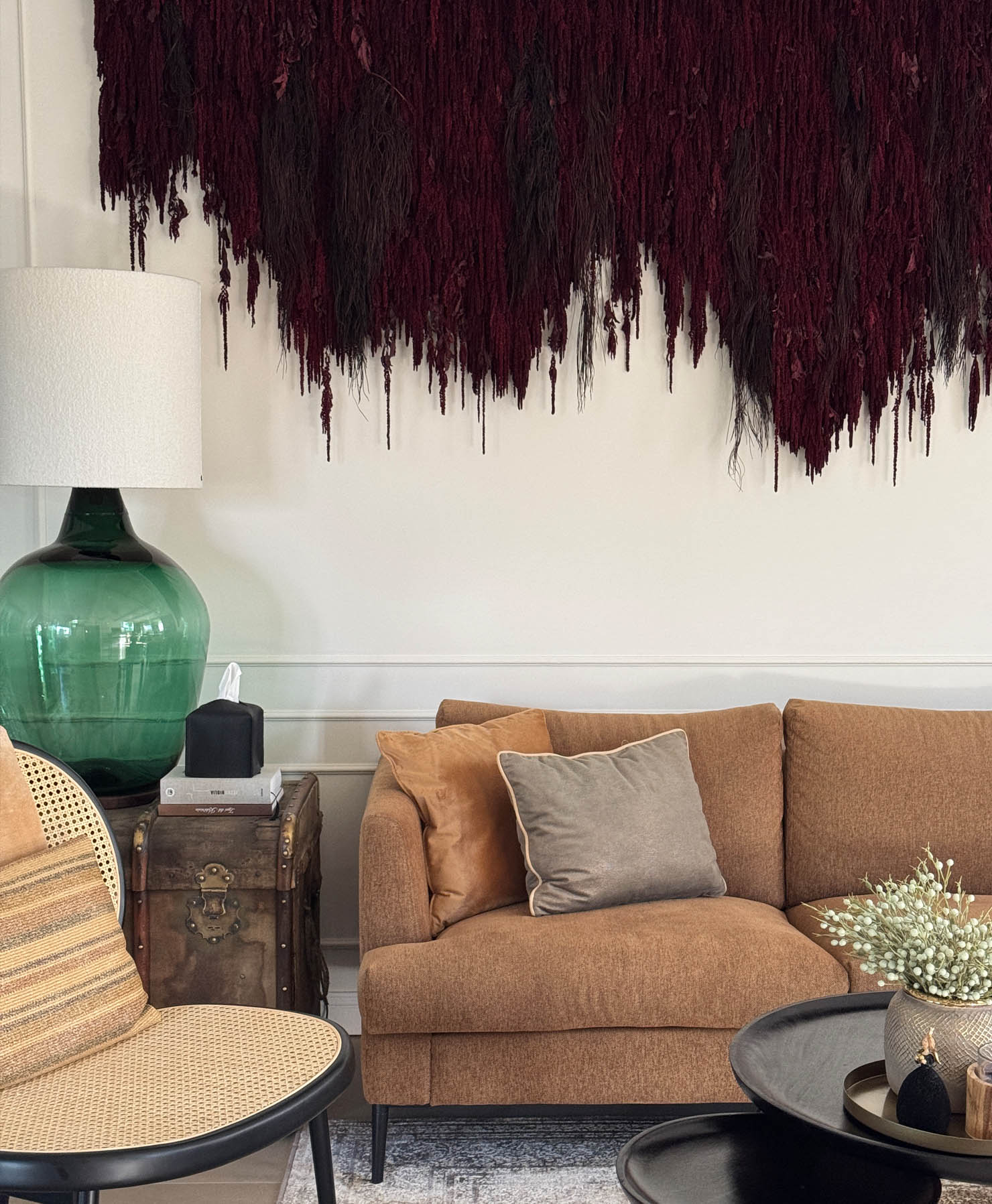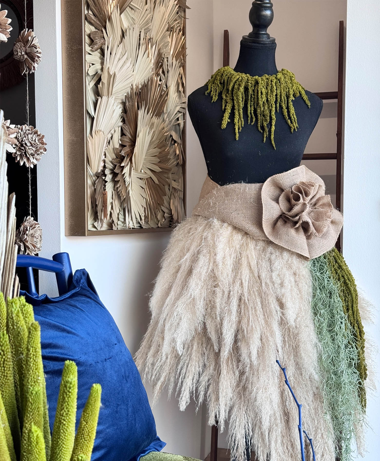 Kézzel készített fali kompozíciókat, asztali dekorációkat és egyedi installációkat hozunk létre a Cavalcade válogatott tárgyaiból és természetes anyagaiból. Minden darab személyes egyeztetés alapján készül, ahol az arányok, az anyaghasználat és az összhatás ugyanannyira fontos, mint maga a tárgy.
